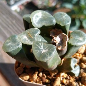 今日も日差しが強く、暖かいです。 朝からストレスブロックを多肉たちへ。 金曜日に届いた苗を紹介します。 万象 オーロラ。 だいぶ探していた万象の銘品。 オークションで。 葉が2枚枯れているからか、万象は人気が無いからか、私一人の入札。 しかし、この株には子株がいるのです✨ 親株を仕立て直しつつ、子株も育てられるのに、格安でした😁 3枚目、ロメオ✕クスピダータサンロベルト。 他の苗を注文しようとしていた時に、同梱割で見つけた苗。 「紫式部(クスピダータパラス✕ロメオ)と似た交配だ!」 と思ってポチりました。 姿も紫式部っぽくてカッコいい👍️ ダーリーサンシャイン✕銀天女とセットで750円でした😌 これは…カッコよくなりそう😏 ちなみに、元々頼もうとしていたのは「トリマネンシス✕沙羅姫牡丹」でした。 これもまたいい苗でした。