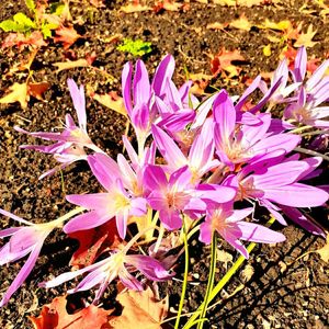 枯れ葉とイヌサフラン(コルチカム)。 イヌサフランの「イヌ」は、「似て非なるもの」を意味するのですね。ずっと🐶ちゃんの事かと思っていました😆 🏷️2011秋の七草+3草に「コルチカム」エントリーしてみまぁす(^-^)/