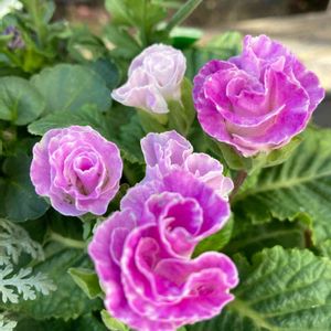 今日のお花 プリムラジュリアンバラ咲き ブルーベリーのムース 最近のお花はネーミングが素敵✨