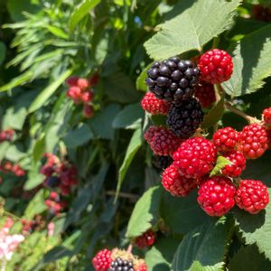 ご近所さんの… 塀沿いに沢山のブラックベリー🫐 いったい何個あるんだろう🤔