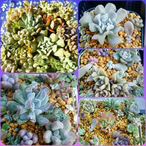 今日寄せ植えた。 10月の朝なのに汗タラタラ… 暑い…。 2ヶ所からの取り寄せ、 出身元同士、苗をシャッフルする事無く寄せる習性。 細々沢山…有れば別の出身苗寄せに永住。 ベビーフィンガー✕スリョン… 出品画像でも可愛かったので… 成長楽しみ(+´ェ`+) ヒューミリスとメキシカンスノーボールの透明感や色味に惹かれる(o˘˘o) おまけの澄江も検索すると可愛くなりそう( =^ω^) おまけ 有り難や〜