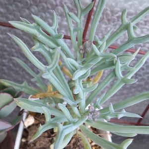 こんにちは╰(*´︶`*)╯♡ 冷たい風が時々吹いて6℃です 金曜日は蕾を探しました♪ 最初に目に付いたのが 『エルクホーン』 セネシオ属のマサイの矢尻にソックリ! 結構背丈があって太いんです✌️ ↙️真ん中に蕾発見🔎 🏷️金曜日の蕾たち 参加させてね🎶