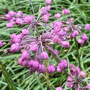 ⬆️先月、九重・蓼原湿原で出会ったヤマラッキョ ウ ⬇️畑の食用ラッキョウ 食べないラッキョウの方が、花数が多く綺麗です。〜天は二物を与えず〜ですね。
