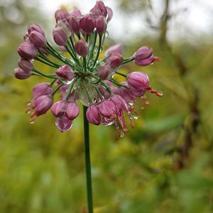 ヤマラッキョウ(山辣韭)ヒガンバナ科ネギ属 ヤマラッキョウの蕾を見つけました。 いくつか探してやっと咲いてるお花を見つけました。 雫がついて綺麗でした。 茎を強くスリスリするとニラのようなの匂いがしました。 花茎は高さ30〜60cm、基部に3〜5個の葉をつける。 茎頂に紅紫色の小さな花が多数、散形状につく。 花期は9〜10月(低地は11月) 福島県以南の本州〜沖縄に分布。 🏷 木曜日は桃色