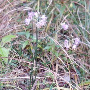 ヤマラッキョウ(山辣韮) ヒガンバナ科ネギ属の多年草 市内の緑地公園の草むらで、 思いがけなく、ヤマラッキョウに出会いました(*・∀・) 花が咲いていなかったら、気がつきませんでした。 6本ある雄しべの成熟するタイミングを、順番に3段階にずらすことで、昆虫による花粉媒介のチャンスを増やしていると考えられ、 花粉を運ぶ昆虫が少なくなる晩秋に咲く花ならではの工夫がされているそうです。 地下にある鱗茎は、栽培のラッキョウと同じく、食べられるそうですが、 長さ2~3㎝のほっそりしたもので、あまり、分球もせず、香りも弱いため、山菜として食べられることは、ほとんどないようです。 花つきは、あまり、よくありませんが、 種子を沢山、こぼして、 来年もまた、お花を見せてほしいです(^.^)