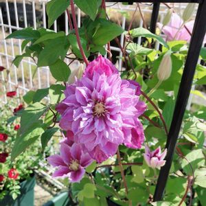ジャックマニー系のクレマチス、ピール 一番花は八重咲きになりました。