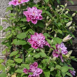 3年目のクレマチスピール 本来の花形は上の一重なのに今年は何故か変異してるのばかり🙄ボリュームアップ⤴️