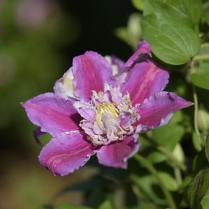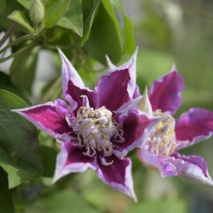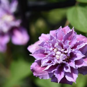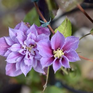 一重咲きと八重咲きが同居。 クレマチス ピール。