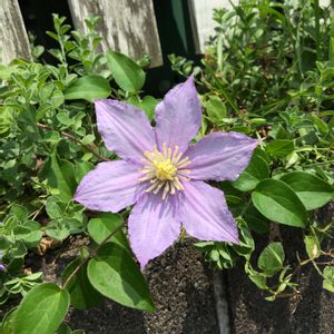 クレマチス ピール✨ …の初開花のはずなんだけど ❓❓❓ 思ってたのと全然違うお花が咲いた😳 まだ株が充実してないからかな🤔❓