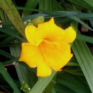 今朝…団地のエントランス前に開いてた黄色の1輪。