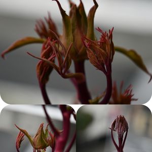 我が家🏡の 牡 丹 1枚目・・牡丹の花(花芽)は、枝の先端にできるのが普通 (左) ですが、まれに 花ができない場合があります (右) これは 昨年の成長期に 花芽として 十分に 成熟しきれなかったためです。しかし、秋には この枝の先端に 花芽ができ、翌年には 立派な花が咲くことになります。 2枚目・・・地上から 直接出る芽は「ひこばえ」と言って、この芽からは 花は咲きません。 枝(幹)を増やす必要がなければ、早めに かき取ります。 3枚目・・・枝の 途中から出る芽に、花は咲きません。 枝が分岐することになりますが、この枝に花が咲くのに1~数年かかります。 4枚目・・・昨年 花が咲いた枝に付いた 花芽(花)です。 このように 毎年 花を咲かせたい場合、花の下の 一番最初の芽を残す必要があります。秋の剪定時には 一番上の芽を切り取らないように 注意⚠️をします。折角 出来た花を 切り落としてしまうことになります。 5枚目・・・別の株です。 左の枝の先端には、花が 咲きます。途中の芽には 花が咲きません。 右側の 二つの枝の先端には 花が咲きません。未成熟のためです。