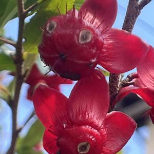 こんにちは😃暑い🥵ですね 今日の庭 ①〜⑤ ミッキーマウスの🌲にお顔が出来ました 実が落ちた後が目の👀様に見えます😃 溢れ種が芽が出て昨年も友人達にあげて まだ6〜7本あります🌲🌲٩(๑❛ᴗ❛๑)۶💕