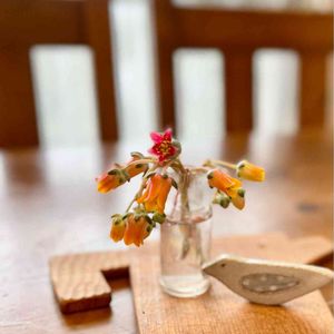 いつもの場所で•*¨*•.¸¸♬︎ 多肉のお花…蝋細工のようで可愛い♡︎ʾʾ アンティークの薬瓶と…( ˘͈ ᵕ ˘͈ )❤︎
