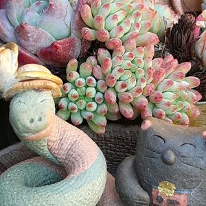こんにちは〜🙌 今日は勝手に七福神の日復活〜🍀 2年ほど前まで七福神丼を作りたくてpicしてました😆 ↖なかなかうまくいかず実家の唯一の子を久々に✨ ↗ご一緒に去年の過酷な夏を乗り越えてくれた七福美尼✨ 枯れ葉取りしたら子株ちゃんを育ててくれてました😆 むちむち群生目指します✨ ←仕事柄じいちゃんばあちゃんの家に伺っています✨ 結構お庭で多肉さん育ててる方もいて楽しませてもらってます🎶 この七福神さんも可愛すぎる💕 持って帰りや〜と言われますが、ここで楽しませて〜と言うてます😂 4月のお姿なのでさらに可愛い💕 ↘虹の玉も地植えになってます✨ 秋冬も楽しみです✨ ↙この子は別のお宅で、モリモリです🎶 いろんなお宅で多肉ちゃん見つけるたびにごっつご機嫌🏷️😆