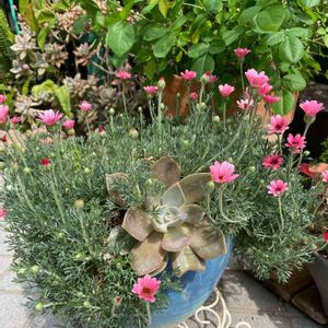 お手入れもしてなくて 咲き揃えてあげることは出来なかったけど ローダンセマムが可愛く次々と咲き出しました😍蕾もた~くさん 嬉しいなあ😆💕後ろの白い子も(アリッサム?)←ニセ情報😅(イベリスです)45さんありがとうね〜☺️🙏 放置してても咲いてくれます😘