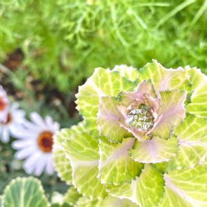 葉牡丹も急に背丈が高くなって来ました。 雨粒がダイヤ💎みたい☺️ ダイヤモンド💎が咲いたら。。ウヒ(*☻-☻*)