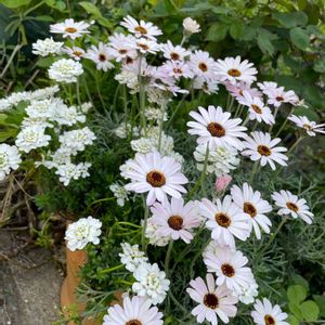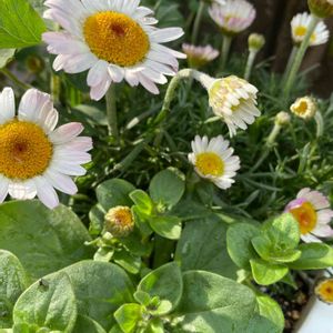 3年目のローダンセマム アプリコットジャムの親株。2年間寄せ植えにしていましたが、昨年同居していたユーカリ 、ヒューケラ等を別居させてあげたら、手足を伸ばしてリラックスしたみたいに広がり始めました。 他の植物があった所はまだ隙間が空いていますが、すぐにいっぱいになりそうです。 手足伸ばしすぎて鉢からはみ出した茎を切り戻しして、あちこちに挿し芽で増やすのが楽しくなってとまりません。 そのうちご近所さんの白と挿し芽苗の取り替えっこできればと話しています。❤️ 右側は6年目のイベリスと左側上には右側の親株から挿し芽で増えた子株です。 追記 2020年5月31日 挿木などで増やした植物を他人に譲渡すると罰せられると知りました。 ちゃんと苗を購入しないと生産農家さんに申し訳ないですものね。