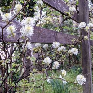 今日のお花がマンサクなので アプローチの白花マンサクを見てみると 未だ硬い冬芽が沢山付いていました 5月の白いブラシのような美しい お花が楽しみです マンサク科 シロバナマンサク属 (フォッサギラ属)