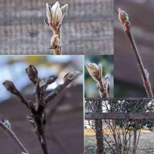 アプローチの白花マンサク (フォサギラ)の冬芽も 膨らんでいます。 4月5月の白いふわふわの お花を楽しみにしています。 🏷ちっちゃいものクラブ