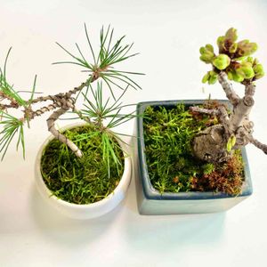 アフター✂️ 苔の貼り替え&苔入れ 黒松ちゃんの山ゴケがカスカスだったので 2年頑張ったし貼り替え🎶 カインズにハイ苔とスギ苔しか売ってなかったので 特徴がバラバラだけどやむ無く購入💰 黒松ちゃんにはハイ苔のみ サクラにはハイ苔&スギ苔ミックス