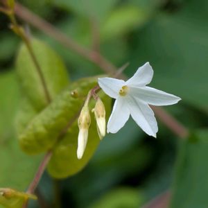 以前にもおたずねした朝顔の葉っぱの豆朝顔より小さい蔓性の畑の土手に揺れてるこのジャスミンとは違う花は何? ずっと調べてるけど、ギブアップです。 誰か教えてください。