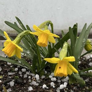 ミニ水仙が咲き始めました💁🏻♀️ でも昨日は雪と霰でとーっても寒そうでした🥶