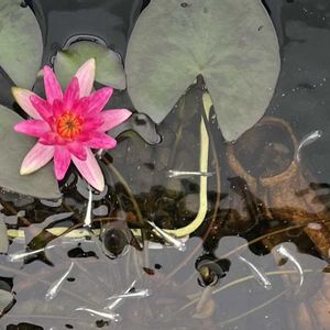 姫睡蓮とアルビノメダカ💖💖💖 こちらの株もやっと花が咲きました💁🏻♀️ 希少なアルビノメダカちゃん20匹ほど越冬してくれて元気泳いでくれてますが…産卵数が少なくて増やすのが大変です😅