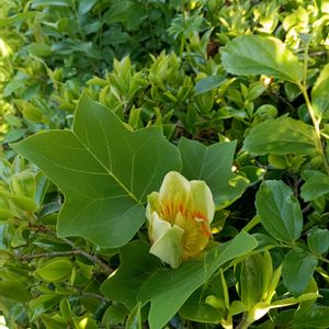 ユリノキ(百合の木) モクレン科ユリノキ属の落葉高木 別名 チューリップリリー・ハンテンボク カラスが落としたユリノキの枝が、沢山、歩道に散らばっていました。 植え込みの上に落ちていたものもあって、花の中を覗いてみると、 カラスの目当ては、蜜だったのか🙄?、蜜が、トロ~っと垂れていました。 蕾がついている枝を、いくつか、持ち帰って、水に挿しました。 花が開くと、ほんとに、チューリップの花みたいで、 楽しませてもらえました😆