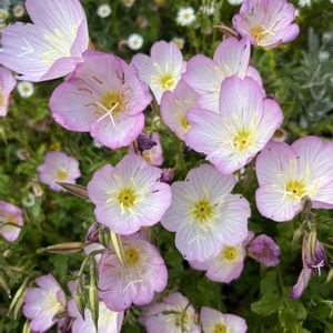 🩷ヒルザキツキミソウ 薄いピンクの可愛い花です。宵に咲く月見草と違い昼に咲くためこの名がつきました。観賞用で北米から輸入されましたが野生化しています。 ⚫︎アカバナ科 マツヨイグサ属 ⚫︎原産 北アメリカ ⚫︎花期 5月〜7月