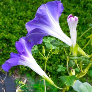 🏷水曜日は水色 アサガオのうなじ✨ 今年のアサガオはこの3色のみ。 去年に比べると少しさみしいな。 ローゼルも植え替えしなかったのでコンパクトに育っています😅