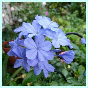 『ルリマツリ』『プルンバーゴ』 爽やかなお花✨ 寒さに弱いと聞いて、躊躇っていたお花です いつもGSで見せて頂いて憧れていました😍 昨年秋に初めてお迎え(200円ぐらい) 冬越しして…春から絶え間なく咲いています