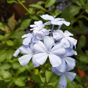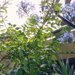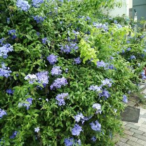 今年の母の日に鉢植えでもらったプルンバーゴを初夏に地植えしたら、こんなに大きく育ちました。フェンスにずっと這っていってくれたらいいな、と思ってます。