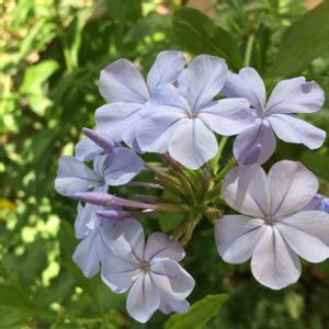 ルリマツリ 別名 プルンバーゴ イソマツ科 ルリマツリ属 低木 (プルンバゴ属) 暑いこの時期 涼しげなブルーで可憐なお花です💙💙💙 なかなか生育旺盛で花期が長く次々に お花を咲かせます。 萼が ベタベタします。