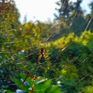 夕暮れの通り雨🌧*̣̩⋆̩°。⋆ 蜘蛛の巣も輝いてました✨ ※ジョロウグモ