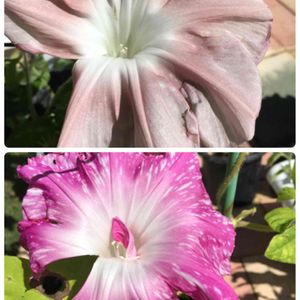 咲いてはみたものの? 期待はずれかどうかもわからない❓ アサガオ好きさんから頂いたんですけど、これでいいのかなぁ? 団十郎と秋の幸と言う事なんですけどプレートが逆のような❓😅 上が団十郎❓ どなたか教えてください🌱