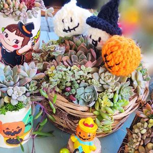 ♡ <\ Happy | \ Halloween♡ ∠ニニニゝ ☆ ( ๑ ❛ᴗ❛ ๑ ) / ゚・ 楽しいハロウィンをお過ごし下さい➰🎃👻 小ちゃな🎃鉢に多肉ベイビー👶挿しました💡 🍭🍬チャンあげるから皆大きく育ってネ💕💖👻💀 ハロウィン系のタグ🏷つけまくり💨💨🙏🙇♀️