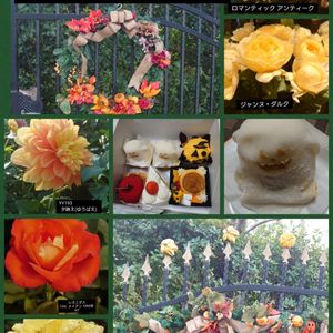 10/31㈰④ 昨日買ってきたシャトレーゼのケーキ。昨日はオバケちゃん👻食べました。 求肥の中はチョコクリームののったバナナケーキ。洋菓子と和菓子のコラボみたいでしたが美味しかったです!! 求肥に包んで食べられるので、チョコクリームで汚れることもなく、良いアイデアでした😄 イングリッシュガーデンのハロウィン装飾と薔薇たちとダリアです。 🌹🧡ロマンティックアンティーク 🌹💛ジャンヌ・ダルク 🌇🧡ダリア夕映え 🌹🧡レオニダス 🌹💛高雄