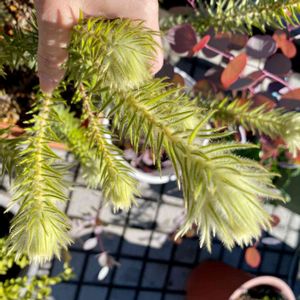 メラレウカタイムハニーマータル🍯 植え替えの時に折れちゃって壁に活ける。 葉っぱもかわいいなー♡ ちっちゃい♡が並んでるみたい! ムラサキオモトは、 新芽が上の方しか出なくて、 どんどん幹立ちみたいになっちゃってバランスが悪くなったので、 思い立って、水挿しに。 わりとすぐ根が出た! また仕切り直しましょう👍