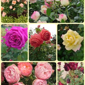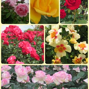いばらきフラワーパーク〜 左上から アベイドゥクリュニー →CL ふれ太鼓 ↓ピース ↓ブラックバッカラ ←ロマンティックチュチュ ↑ムンステッドウッド 真中 サマーソング