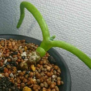 モニラリア・オブコニカ 10月11日から2ヶ月経過🌱 びろ~んと伸びてだらしなくなってるモニラリア💦 頭から再び🐇の頭が伸びてきました✨…若干窮屈そう😞 メセンの脱皮補助みたいに割いてあげるべきか💧このまま触らずに行くべきか😓 根本から緑色の芽が伸び始めてます🎵分岐するのかな✨ 5年目の本気見せてやれ❗(* ̄∇ ̄)笑