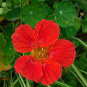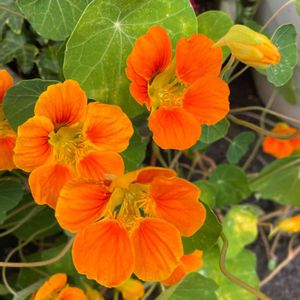 おはようございます☂️ ナスタチウムが咲いていました 丸い葉が蓮に似ているので、金蓮花(キンレンカ)とも言われ、葉や花はハーブ🌿として食用にもなるそうです😲 トロピカルな雰囲気がありますね❤