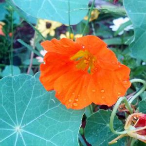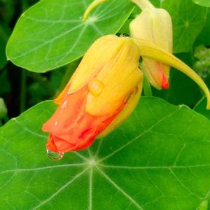 ナスタチウムの花。 つぼみが雫で💧濡れています。