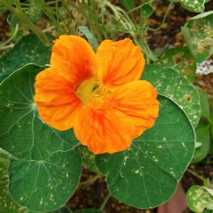 おはようございます😃寒いです😵今日の花金蓮花(ナスタチューム)零れ種からの開花毎年メダカ瓶の横から乱れて咲いてます🌸挿し芽してみよう🤞