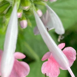 サルビア コクネシア 毎年この優しいピンク色に癒されています💕 小さなアリさんと仲良しみたい🐜 産毛はアリさんが登りやすいようにあるのかなぁ