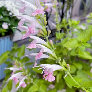 🪴草花たち その255 サルビア・コクネシア こちらは白花。 爽やかです。 シベがぴょんと長くて可愛いです♪ ☀️ *・゜゚・*:.。..。.:*・''・🏝* ✨:.。.🐬 .。.:*・゜゚・*