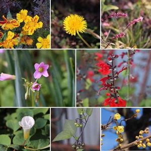 散歩中に見つけた草花。たぶんですが一つはタンポポでその他は何でしょうか。