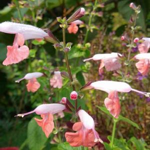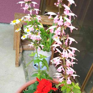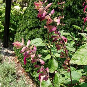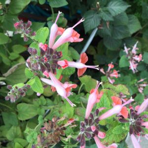 零れ種で毎年咲いてくれる、サルビアコネクシア。色もアプリコットピンクで可愛いの。 しかし結構タネが遠くまで飛ぶようで、びっくりするようなところからも咲いてきます😅邪魔にはならないからどこで咲いてもらっても大歓迎♡