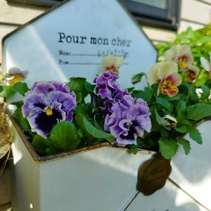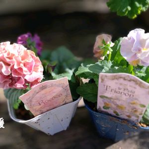 ①&⑤今日は、アンジェラが咲いてくれたので、ユーフォルビアとジョウロに入れてみました。 ②③花遊び教室のクリスマスアレンジ🎄 私の見本より上手に作ってくれて🥰いい感じ〜 ④ビオラレディに、大好きなバラあおいといおりを寄せ鉢して楽しんでみました。