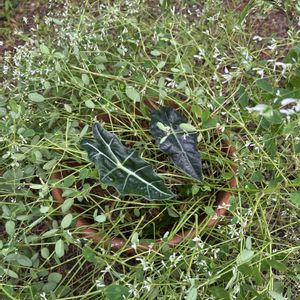 伸びすぎたユーフォルビアの鉢の中にアロカシア・アマゾニカの苗がwww どうして?何処から?移し替えないと(笑)
