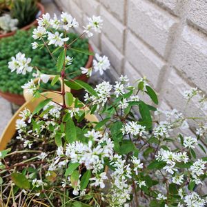 🌻🪴💐🌹🌻🍀 🍀🤍ユーフォルビア(ダイアモンドフロスト)🤍🍀 💐ユーフォルビアの花言葉は、(君にま た会いたい)と(デリケートな美)など です 💐ダイアモンドフロストは4月から11月 にかけて白い花が咲くユーフォルビ アの一種です 💐この植物の美しい白い(花) は実際に は花ではなく、芽めやつぼみをつつ んでいる小型の苞(ほう)で、本来の花 はそれほど目立ちません 💐株姿はよく分枝してふんわりとした ボリューム感があり、剪定をしなく ても自然に形が整います 💐ユーフォルビア・ダイアモンドスタ ー は苞の密度が高く、まるで八重咲 きの花のような豊かな見た目が特徴 で、高さは約30cmとコンパクトで、 スペースを取らずに美しい花が楽しめ る植物です 💐地植えには不向きなため、移動が容 易な鉢植えやハンギングバスケット での栽培が適しています 🍀🌻🪴💐🌹🌻🍀